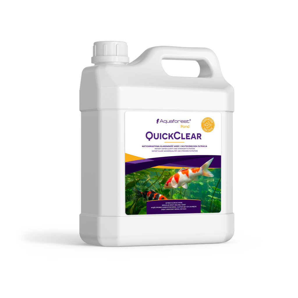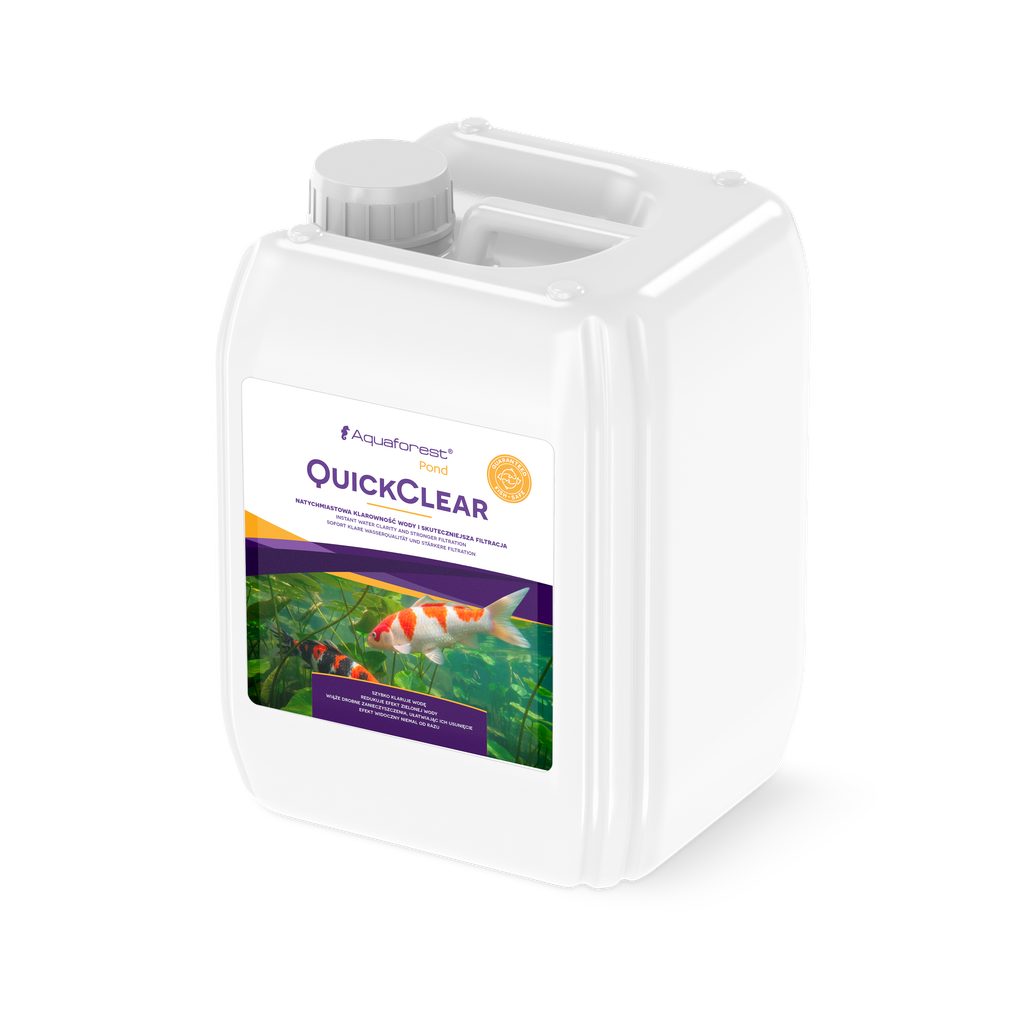 Quick Clear is a specialised product designed to purify water in ponds . It works on the basis of a natural coagulation process – small suspended particles combine into larger clusters that are easily captured by mechanical filtration.